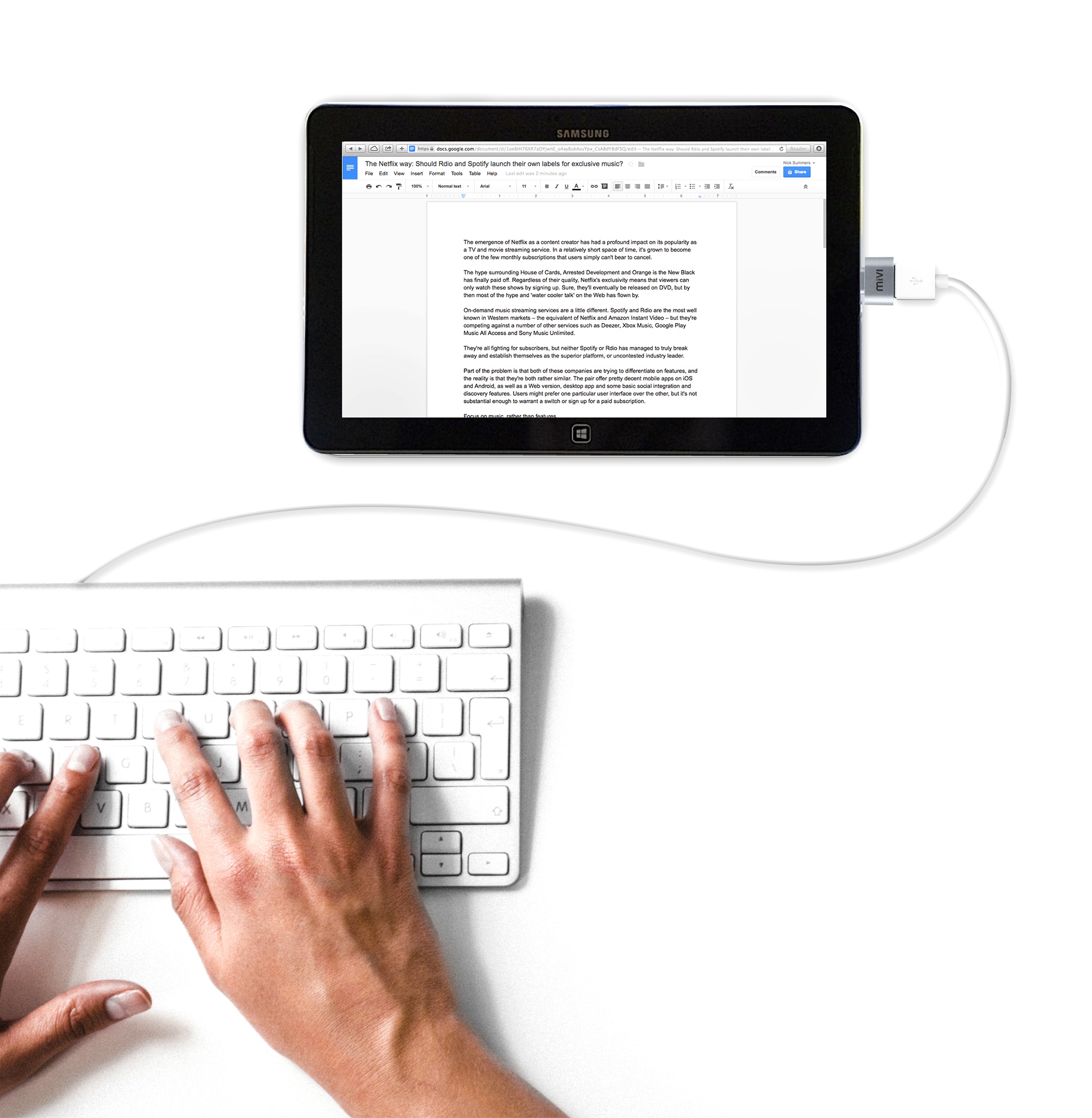 Easily connect your peripherials such as mouse or keyboard to your tablets and manage all your information, transfer photos, documents, videos, songs, and other files without hassle.